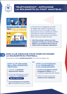 En organisant une animation, un tournoi, un match amical ou tout autre événement au profit du Téléthon, chaque club participe automatiquement à l’opération #TéléthonFoot, initiée par la FFF et l’AFM-Téléthon.